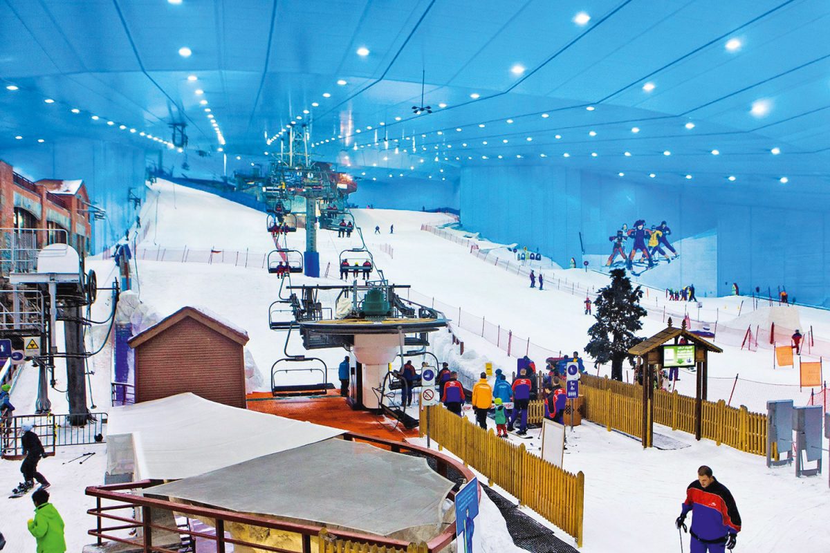 Ski Dubai is an indoor ski resort in the Mall of the Emirates, offering skiing, snowboarding, and snow activities in a climate-controlled environment.